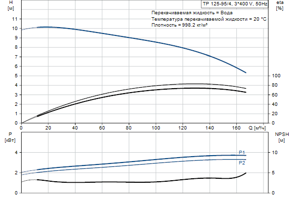 Одноступенчатый, без соединительной муфты, центробежный с всасывающим и выпускным патрубками на одной линии. Насос имеет конструкцию извлечения сверху, т.е. головную часть (электродвигатель, голову насоса и рабочее колесо) можно демонтировать для обслуживания или ремонта в то время, как корпус насоса остается на трубопроводе.