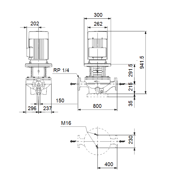 Одноступенчатый, без соединительной муфты, центробежный с всасывающим и выпускным патрубками на одной линии. Насос имеет конструкцию извлечения сверху, т.е. головную часть (электродвигатель, голову насоса и рабочее колесо) можно демонтировать для обслуживания или ремонта в то время, как корпус насоса остается на трубопроводе.