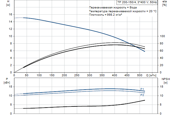 Одноступенчатый, без соединительной муфты, центробежный с всасывающим и выпускным патрубками на одной линии. Насос имеет конструкцию извлечения сверху, т.е. головную часть (электродвигатель, голову насоса и рабочее колесо) можно демонтировать для обслуживания или ремонта в то время, как корпус насоса остается на трубопроводе.