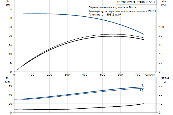 Одноступенчатый, без соединительной муфты, центробежный с всасывающим и выпускным патрубками на одной линии. Насос имеет конструкцию извлечения сверху, т.е. головную часть (электродвигатель, голову насоса и рабочее колесо) можно демонтировать для обслуживания или ремонта в то время, как корпус насоса остается на трубопроводе.
