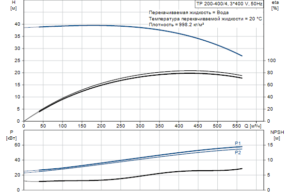 Одноступенчатый, без соединительной муфты, центробежный с всасывающим и выпускным патрубками на одной линии. Насос имеет конструкцию извлечения сверху, т.е. головную часть (электродвигатель, голову насоса и рабочее колесо) можно демонтировать для обслуживания или ремонта в то время, как корпус насоса остается на трубопроводе.