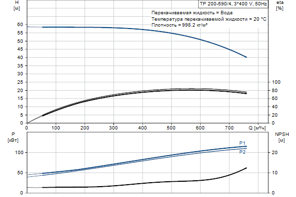 Одноступенчатый, без соединительной муфты, центробежный с всасывающим и выпускным патрубками на одной линии. Насос имеет конструкцию извлечения сверху, т.е. головную часть (электродвигатель, голову насоса и рабочее колесо) можно демонтировать для обслуживания или ремонта в то время, как корпус насоса остается на трубопроводе.