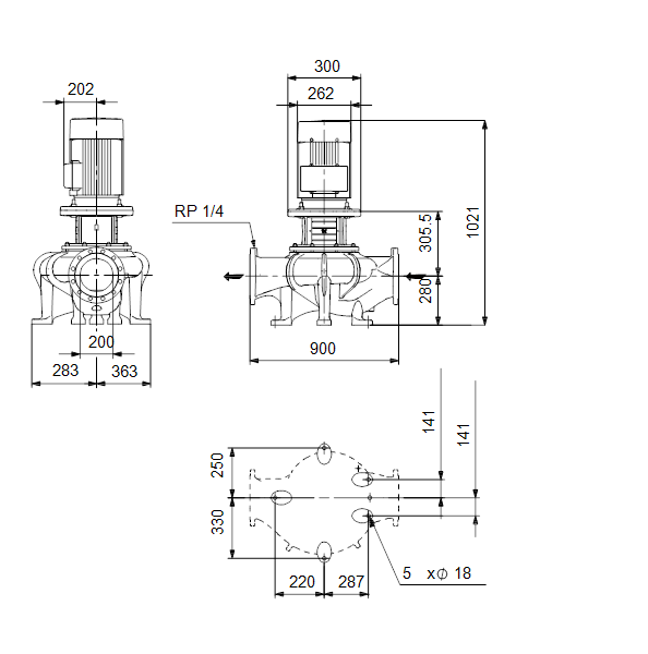 Одноступенчатый, без соединительной муфты, центробежный с всасывающим и выпускным патрубками на одной линии. Насос имеет конструкцию извлечения сверху, т.е. головную часть (электродвигатель, голову насоса и рабочее колесо) можно демонтировать для обслуживания или ремонта в то время, как корпус насоса остается на трубопроводе.