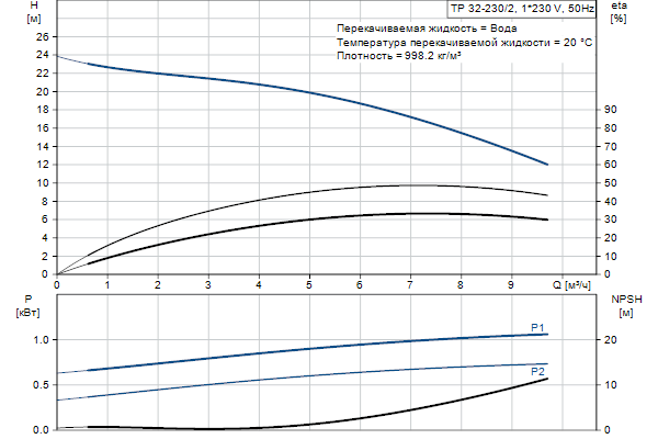 Одноступенчатый, без соединительной муфты, центробежный с всасывающим и выпускным патрубками на одной линии. Насос имеет конструкцию извлечения сверху, т.е. головную часть (электродвигатель, голову насоса и рабочее колесо) можно демонтировать для обслуживания или ремонта в то время, как корпус насоса остается на трубопроводе.