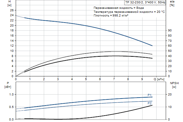 Насос оснащен вентилятором охлаждения асинхронного двигателя.