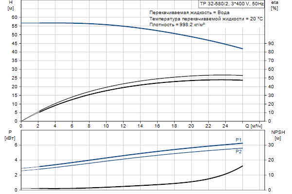 Одноступенчатый, без соединительной муфты, центробежный с всасывающим и выпускным патрубками на одной линии. Насос имеет конструкцию извлечения сверху, т.е. головную часть (электродвигатель, голову насоса и рабочее колесо) можно демонтировать для обслуживания или ремонта в то время, как корпус насоса остается на трубопроводе.