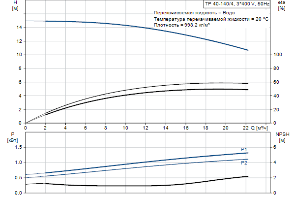 Одноступенчатый, без соединительной муфты, центробежный с всасывающим и выпускным патрубками на одной линии. Насос имеет конструкцию извлечения сверху, т.е. головную часть (электродвигатель, голову насоса и рабочее колесо) можно демонтировать для обслуживания или ремонта в то время, как корпус насоса остается на трубопроводе.