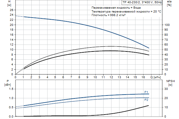 Одноступенчатый, без соединительной муфты, центробежный с всасывающим и выпускным патрубками на одной линии. Насос имеет конструкцию извлечения сверху, т.е. головную часть (электродвигатель, голову насоса и рабочее колесо) можно демонтировать для обслуживания или ремонта в то время, как корпус насоса остается на трубопроводе.