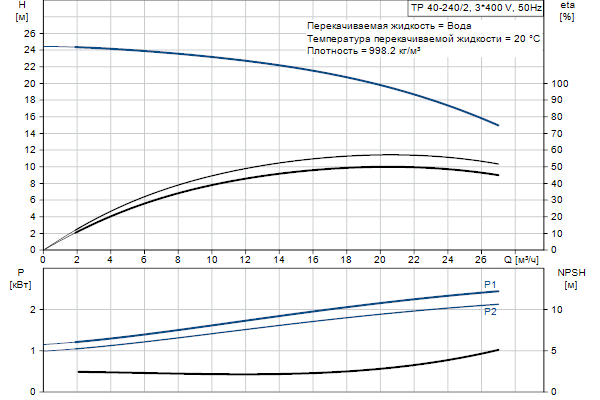 Одноступенчатый, без соединительной муфты, центробежный с всасывающим и выпускным патрубками на одной линии. Насос имеет конструкцию извлечения сверху, т.е. головную часть (электродвигатель, голову насоса и рабочее колесо) можно демонтировать для обслуживания или ремонта в то время, как корпус насоса остается на трубопроводе.