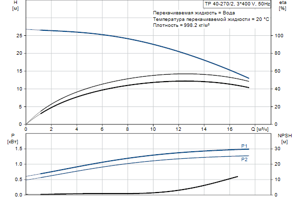 Одноступенчатый, без соединительной муфты, центробежный с всасывающим и выпускным патрубками на одной линии. Насос имеет конструкцию извлечения сверху, т.е. головную часть (электродвигатель, голову насоса и рабочее колесо) можно демонтировать для обслуживания или ремонта в то время, как корпус насоса остается на трубопроводе.
