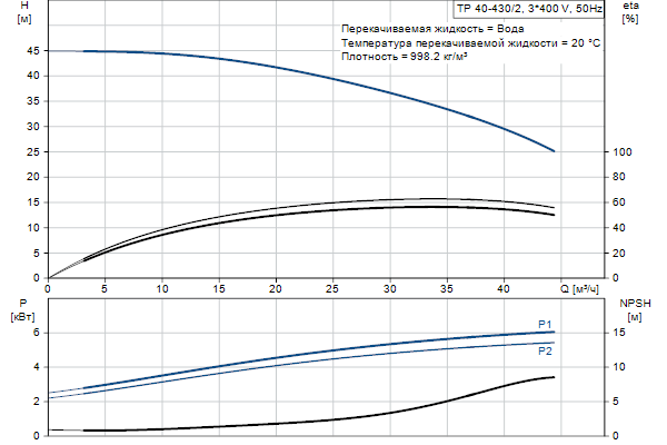 Одноступенчатый, без соединительной муфты, центробежный с всасывающим и выпускным патрубками на одной линии. Насос имеет конструкцию извлечения сверху, т.е. головную часть (электродвигатель, голову насоса и рабочее колесо) можно демонтировать для обслуживания или ремонта в то время, как корпус насоса остается на трубопроводе.