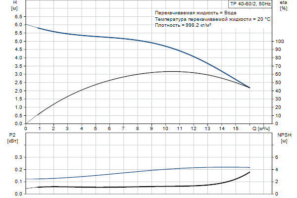 Одноступенчатый, без соединительной муфты, центробежный с всасывающим и выпускным патрубками на одной линии. Насос имеет конструкцию извлечения сверху, т.е. головную часть (электродвигатель, голову насоса и рабочее колесо) можно демонтировать для обслуживания или ремонта в то время, как корпус насоса остается на трубопроводе.