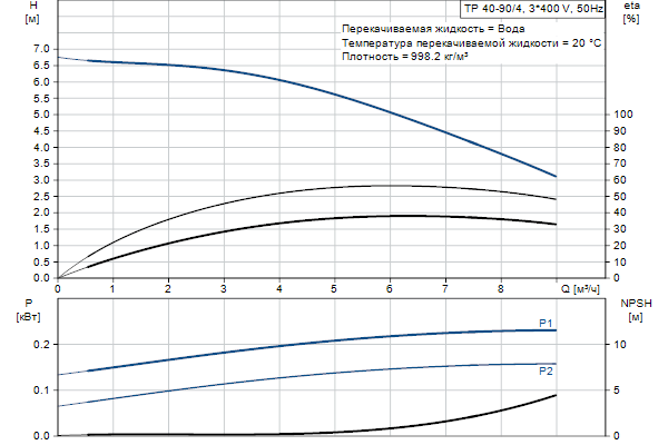 Одноступенчатый, без соединительной муфты, центробежный с всасывающим и выпускным патрубками на одной линии. Насос имеет конструкцию извлечения сверху, т.е. головную часть (электродвигатель, голову насоса и рабочее колесо) можно демонтировать для обслуживания или ремонта в то время, как корпус насоса остается на трубопроводе.
