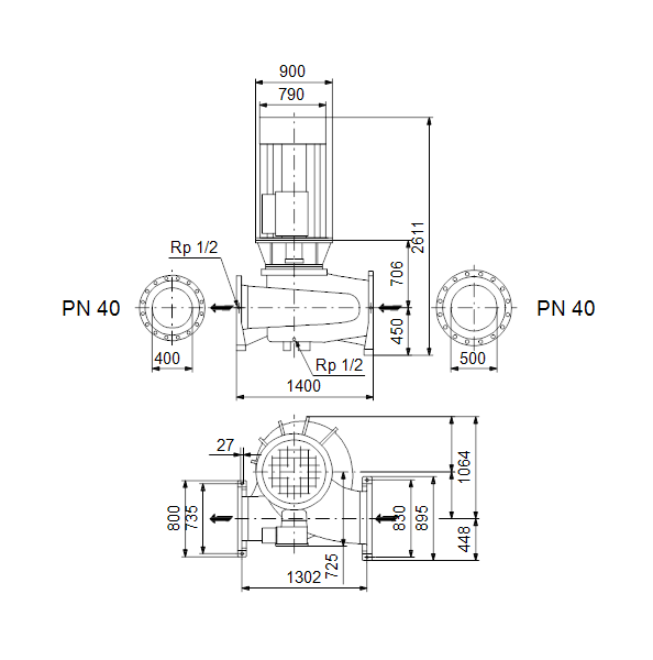 Уплотнения вала соответствуют EN 12756. Подсоединение к трубопроводу с помощью фланцев PN 40 DIN (EN 1092-2 и ISO 7005-2).