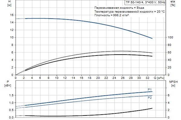 Одноступенчатый, без соединительной муфты, центробежный с всасывающим и выпускным патрубками на одной линии. Насос имеет конструкцию извлечения сверху, т.е. головную часть (электродвигатель, голову насоса и рабочее колесо) можно демонтировать для обслуживания или ремонта в то время, как корпус насоса остается на трубопроводе.
