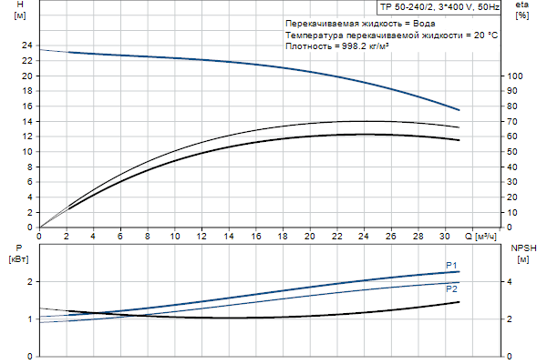 Одноступенчатый, без соединительной муфты, центробежный с всасывающим и выпускным патрубками на одной линии. Насос имеет конструкцию извлечения сверху, т.е. головную часть (электродвигатель, голову насоса и рабочее колесо) можно демонтировать для обслуживания или ремонта в то время, как корпус насоса остается на трубопроводе.