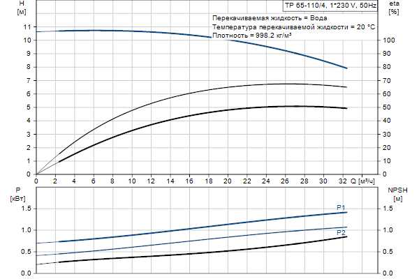 Насос оснащен вентилятором охлаждения асинхронного двигателя.