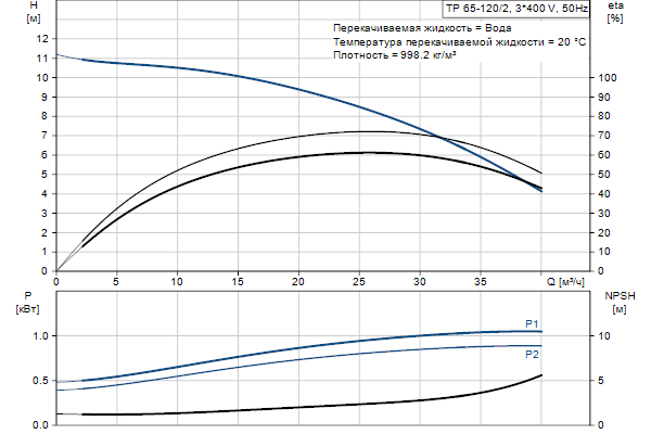 Одноступенчатый, без соединительной муфты, центробежный с всасывающим и выпускным патрубками на одной линии. Насос имеет конструкцию извлечения сверху, т.е. головную часть (электродвигатель, голову насоса и рабочее колесо) можно демонтировать для обслуживания или ремонта в то время, как корпус насоса остается на трубопроводе.