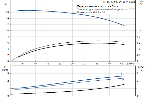 Одноступенчатый, без соединительной муфты, центробежный с всасывающим и выпускным патрубками на одной линии. Насос имеет конструкцию извлечения сверху, т.е. головную часть (электродвигатель, голову насоса и рабочее колесо) можно демонтировать для обслуживания или ремонта в то время, как корпус насоса остается на трубопроводе.