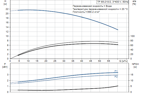 Одноступенчатый, без соединительной муфты, центробежный с всасывающим и выпускным патрубками на одной линии. Насос имеет конструкцию извлечения сверху, т.е. головную часть (электродвигатель, голову насоса и рабочее колесо) можно демонтировать для обслуживания или ремонта в то время, как корпус насоса остается на трубопроводе.