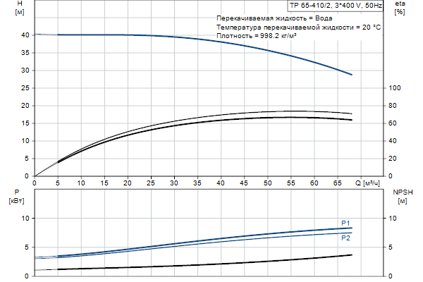 Одноступенчатый, без соединительной муфты, центробежный с всасывающим и выпускным патрубками на одной линии. Насос имеет конструкцию извлечения сверху, т.е. головную часть (электродвигатель, голову насоса и рабочее колесо) можно демонтировать для обслуживания или ремонта в то время, как корпус насоса остается на трубопроводе.