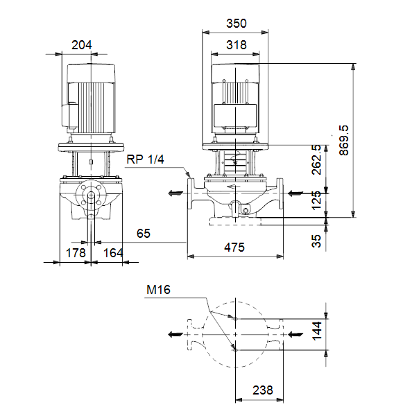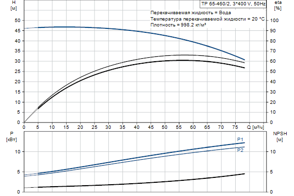 Одноступенчатый, без соединительной муфты, центробежный с всасывающим и выпускным патрубками на одной линии. Насос имеет конструкцию извлечения сверху, т.е. головную часть (электродвигатель, голову насоса и рабочее колесо) можно демонтировать для обслуживания или ремонта в то время, как корпус насоса остается на трубопроводе.