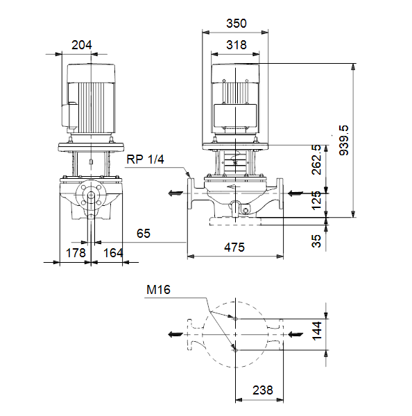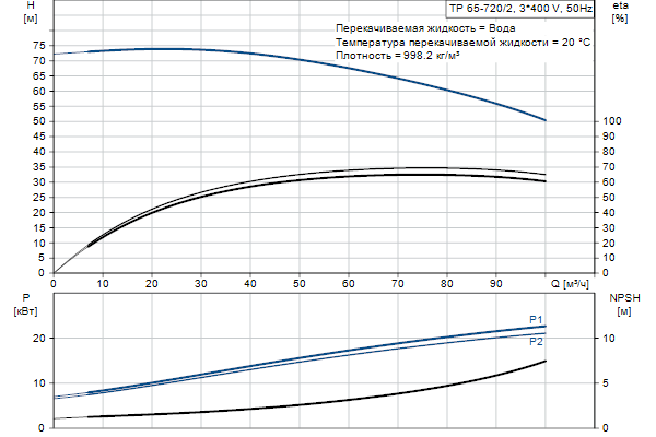 Одноступенчатый, без соединительной муфты, центробежный с всасывающим и выпускным патрубками на одной линии. Насос имеет конструкцию извлечения сверху, т.е. головную часть (электродвигатель, голову насоса и рабочее колесо) можно демонтировать для обслуживания или ремонта в то время, как корпус насоса остается на трубопроводе.