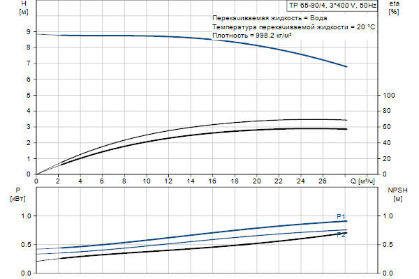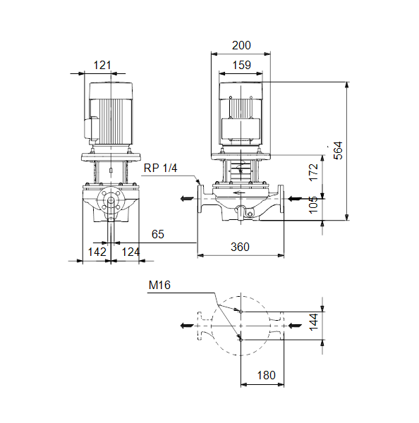 Одноступенчатый, без соединительной муфты, центробежный с всасывающим и выпускным патрубками на одной линии. Насос имеет конструкцию извлечения сверху, т.е. головную часть (электродвигатель, голову насоса и рабочее колесо) можно демонтировать для обслуживания или ремонта в то время, как корпус насоса остается на трубопроводе.