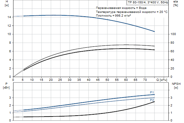 Одноступенчатый, без соединительной муфты, центробежный с всасывающим и выпускным патрубками на одной линии. Насос имеет конструкцию извлечения сверху, т.е. головную часть (электродвигатель, голову насоса и рабочее колесо) можно демонтировать для обслуживания или ремонта в то время, как корпус насоса остается на трубопроводе.