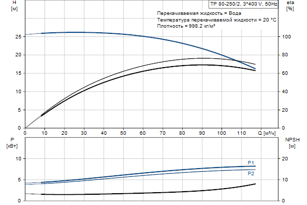 Одноступенчатый, без соединительной муфты, центробежный с всасывающим и выпускным патрубками на одной линии. Насос имеет конструкцию извлечения сверху, т.е. головную часть (электродвигатель, голову насоса и рабочее колесо) можно демонтировать для обслуживания или ремонта в то время, как корпус насоса остается на трубопроводе.