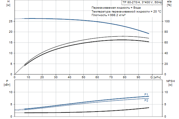 Одноступенчатый, без соединительной муфты, центробежный с всасывающим и выпускным патрубками на одной линии. Насос имеет конструкцию извлечения сверху, т.е. головную часть (электродвигатель, голову насоса и рабочее колесо) можно демонтировать для обслуживания или ремонта в то время, как корпус насоса остается на трубопроводе.