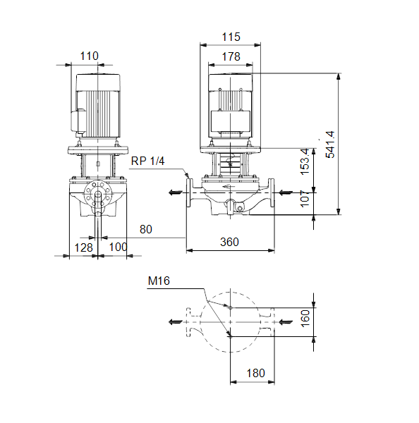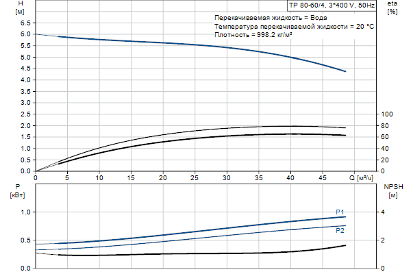 Одноступенчатый, без соединительной муфты, центробежный с всасывающим и выпускным патрубками на одной линии. Насос имеет конструкцию извлечения сверху, т.е. головную часть (электродвигатель, голову насоса и рабочее колесо) можно демонтировать для обслуживания или ремонта в то время, как корпус насоса остается на трубопроводе.