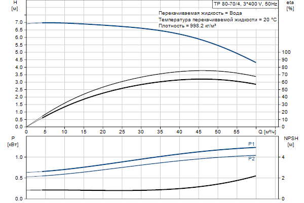 Одноступенчатый, без соединительной муфты, центробежный с всасывающим и выпускным патрубками на одной линии. Насос имеет конструкцию извлечения сверху, т.е. головную часть (электродвигатель, голову насоса и рабочее колесо) можно демонтировать для обслуживания или ремонта в то время, как корпус насоса остается на трубопроводе.