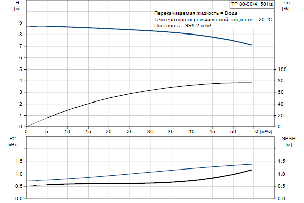 Одноступенчатый, без соединительной муфты, центробежный с всасывающим и выпускным патрубками на одной линии. Насос имеет конструкцию извлечения сверху, т.е. головную часть (электродвигатель, голову насоса и рабочее колесо) можно демонтировать для обслуживания или ремонта в то время, как корпус насоса остается на трубопроводе.