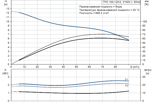 Одноступенчатый, без соединительной муфты, центробежный с всасывающим и выпускным патрубками на одной линии. Сдвоенный насос спроектирован с двумя параллельными головными частями. Насос имеет конструкцию извлечения сверху, т.е. головную часть (электродвигатель, голову насоса и рабочее колесо) можно демонтировать для обслуживания или ремонта в то время, как корпус насоса остается на трубопроводе.