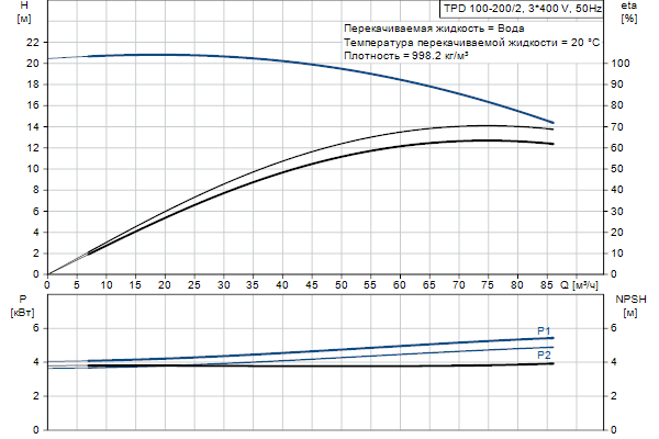 Одноступенчатый, без соединительной муфты, центробежный с всасывающим и выпускным патрубками на одной линии. Сдвоенный насос спроектирован с двумя параллельными головными частями. Насос имеет конструкцию извлечения сверху, т.е. головную часть (электродвигатель, голову насоса и рабочее колесо) можно демонтировать для обслуживания или ремонта в то время, как корпус насоса остается на трубопроводе.