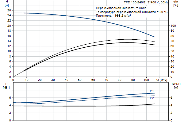 Одноступенчатый, без соединительной муфты, центробежный с всасывающим и выпускным патрубками на одной линии. Сдвоенный насос спроектирован с двумя параллельными головными частями. Насос имеет конструкцию извлечения сверху, т.е. головную часть (электродвигатель, голову насоса и рабочее колесо) можно демонтировать для обслуживания или ремонта в то время, как корпус насоса остается на трубопроводе.