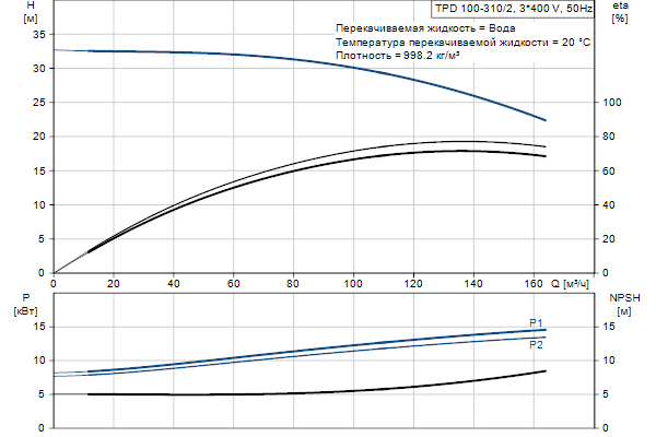 Одноступенчатый, без соединительной муфты, центробежный с всасывающим и выпускным патрубками на одной линии. Сдвоенный насос спроектирован с двумя параллельными головными частями. Насос имеет конструкцию извлечения сверху, т.е. головную часть (электродвигатель, голову насоса и рабочее колесо) можно демонтировать для обслуживания или ремонта в то время, как корпус насоса остается на трубопроводе.