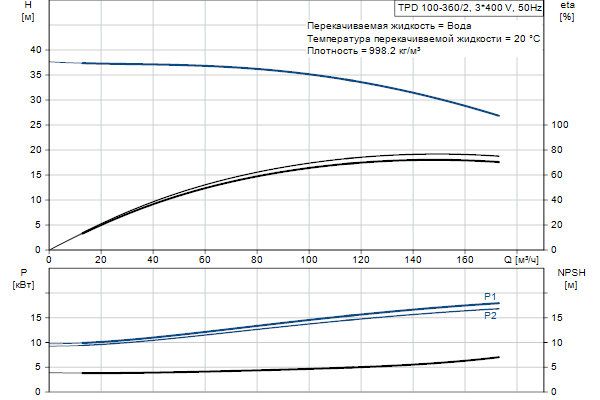 Одноступенчатый, без соединительной муфты, центробежный с всасывающим и выпускным патрубками на одной линии. Сдвоенный насос спроектирован с двумя параллельными головными частями. Насос имеет конструкцию извлечения сверху, т.е. головную часть (электродвигатель, голову насоса и рабочее колесо) можно демонтировать для обслуживания или ремонта в то время, как корпус насоса остается на трубопроводе.