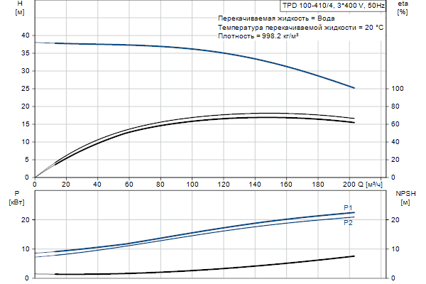 Одноступенчатый, без соединительной муфты, центробежный с всасывающим и выпускным патрубками на одной линии. Сдвоенный насос спроектирован с двумя параллельными головными частями. Насос имеет конструкцию извлечения сверху, т.е. головную часть (электродвигатель, голову насоса и рабочее колесо) можно демонтировать для обслуживания или ремонта в то время, как корпус насоса остается на трубопроводе.