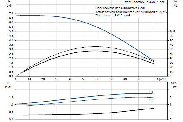 Одноступенчатый, без соединительной муфты, центробежный с всасывающим и выпускным патрубками на одной линии. Сдвоенный насос спроектирован с двумя параллельными головными частями. Насос имеет конструкцию извлечения сверху, т.е. головную часть (электродвигатель, голову насоса и рабочее колесо) можно демонтировать для обслуживания или ремонта в то время, как корпус насоса остается на трубопроводе.