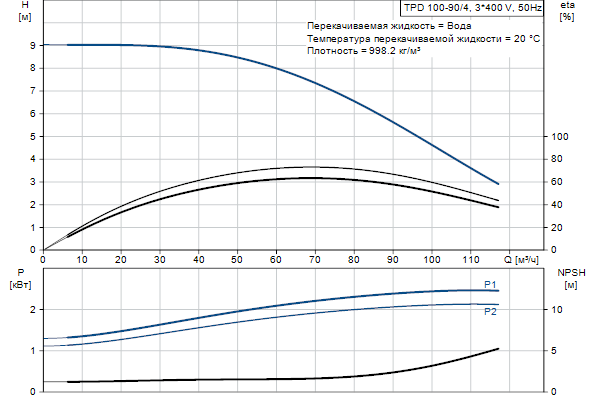 Одноступенчатый, без соединительной муфты, центробежный с всасывающим и выпускным патрубками на одной линии. Сдвоенный насос спроектирован с двумя параллельными головными частями. Насос имеет конструкцию извлечения сверху, т.е. головную часть (электродвигатель, голову насоса и рабочее колесо) можно демонтировать для обслуживания или ремонта в то время, как корпус насоса остается на трубопроводе.