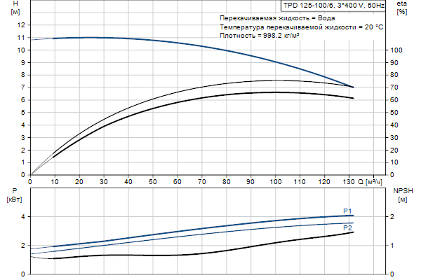 Одноступенчатый, без соединительной муфты, центробежный с всасывающим и выпускным патрубками на одной линии. Сдвоенный насос спроектирован с двумя параллельными головными частями. Насос имеет конструкцию извлечения сверху, т.е. головную часть (электродвигатель, голову насоса и рабочее колесо) можно демонтировать для обслуживания или ремонта в то время, как корпус насоса остается на трубопроводе.