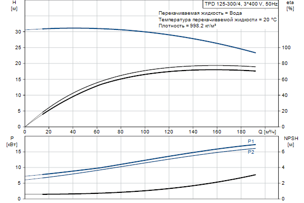 Одноступенчатый, без соединительной муфты, центробежный с всасывающим и выпускным патрубками на одной линии. Сдвоенный насос спроектирован с двумя параллельными головными частями. Насос имеет конструкцию извлечения сверху, т.е. головную часть (электродвигатель, голову насоса и рабочее колесо) можно демонтировать для обслуживания или ремонта в то время, как корпус насоса остается на трубопроводе.