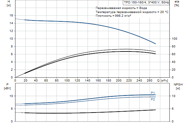 Одноступенчатый, без соединительной муфты, центробежный с всасывающим и выпускным патрубками на одной линии. Сдвоенный насос спроектирован с двумя параллельными головными частями. Насос имеет конструкцию извлечения сверху, т.е. головную часть (электродвигатель, голову насоса и рабочее колесо) можно демонтировать для обслуживания или ремонта в то время, как корпус насоса остается на трубопроводе.