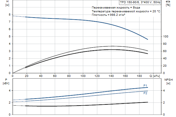Одноступенчатый, без соединительной муфты, центробежный с всасывающим и выпускным патрубками на одной линии. Сдвоенный насос спроектирован с двумя параллельными головными частями. Насос имеет конструкцию извлечения сверху, т.е. головную часть (электродвигатель, голову насоса и рабочее колесо) можно демонтировать для обслуживания или ремонта в то время, как корпус насоса остается на трубопроводе.