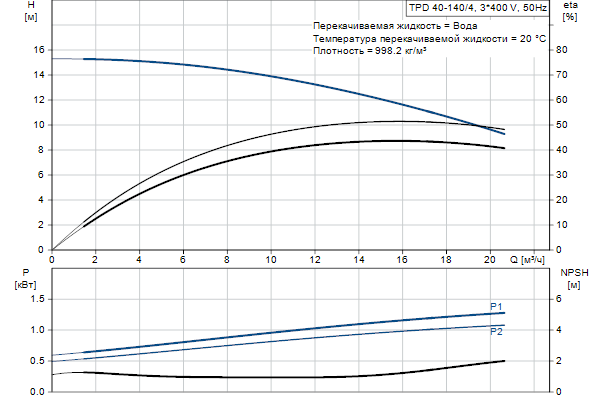Одноступенчатый, без соединительной муфты, центробежный с всасывающим и выпускным патрубками на одной линии. Сдвоенный насос спроектирован с двумя параллельными головными частями. Насос имеет конструкцию извлечения сверху, т.е. головную часть (электродвигатель, голову насоса и рабочее колесо) можно демонтировать для обслуживания или ремонта в то время, как корпус насоса остается на трубопроводе.