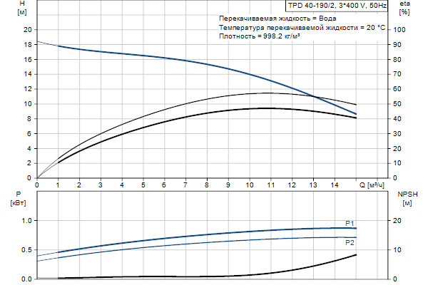 Одноступенчатый, без соединительной муфты, центробежный с всасывающим и выпускным патрубками на одной линии. Сдвоенный насос спроектирован с двумя параллельными головными частями. Насос имеет конструкцию извлечения сверху, т.е. головную часть (электродвигатель, голову насоса и рабочее колесо) можно демонтировать для обслуживания или ремонта в то время, как корпус насоса остается на трубопроводе.