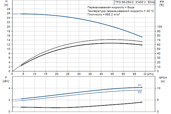 Одноступенчатый, без соединительной муфты, центробежный с всасывающим и выпускным патрубками на одной линии. Сдвоенный насос спроектирован с двумя параллельными головными частями. Насос имеет конструкцию извлечения сверху, т.е. головную часть (электродвигатель, голову насоса и рабочее колесо) можно демонтировать для обслуживания или ремонта в то время, как корпус насоса остается на трубопроводе.