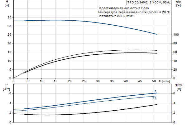 Одноступенчатый, без соединительной муфты, центробежный с всасывающим и выпускным патрубками на одной линии. Сдвоенный насос спроектирован с двумя параллельными головными частями. Насос имеет конструкцию извлечения сверху, т.е. головную часть (электродвигатель, голову насоса и рабочее колесо) можно демонтировать для обслуживания или ремонта в то время, как корпус насоса остается на трубопроводе.
